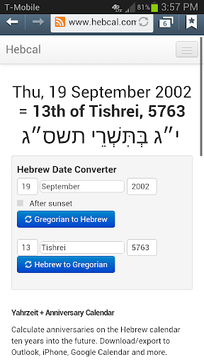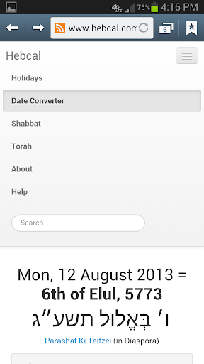 Convertidor de calendario civil - judío además de mostrar las Parashot (porciones bíblicas semanales)