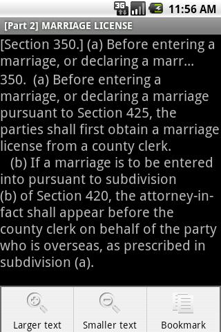 California Family Code for Android is the complete Family Code in your Android smartphone. It's available in an easily browsable and searchable format, and is suitable for lawyers and law students.