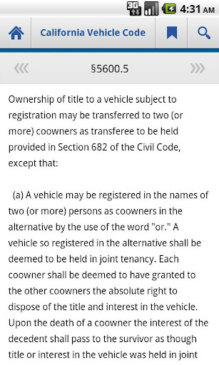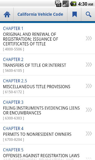 California Vehicle Code by Pocket Topics is the only California Vehicle code reference software you need on your Android device. Designed for law enforcement personnel, lawyers, paralegals or anyone who needs quick access to California's Vehicle Code. Use in in the patrol car or in the court room. All data is stored on your device so you never need an internet connection.