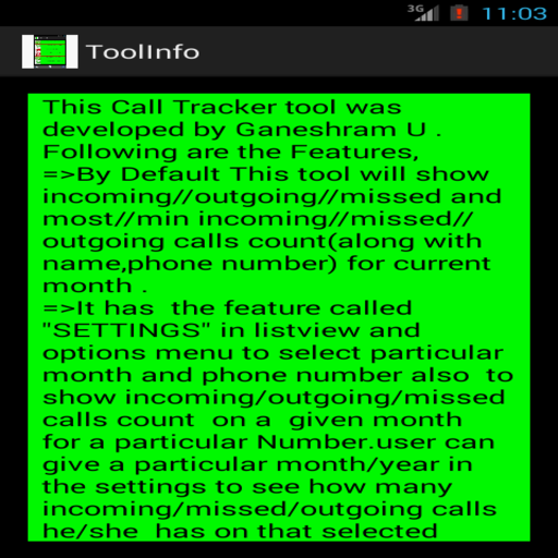 It is mainly useful for Postpaid/Prepaid Users to keep track of monthly Incoming/outgoing calls count/Duration in minutes & seconds.