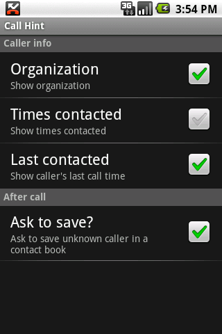 When you receive call this app shows detailed information about the caller based on your selection. After call is completed it can remind you to save new phone number in your contact book.