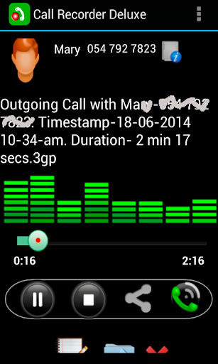 ★PERFECT TIMESTAMP – Unlike other call recording apps, Call Recorder Deluxe intelligently saves call recordings with the best timestamp you could ever imagine. This includes the name of contact recorded, phone number, time and date of call recording, duration of call recording and type of file saved etc. Even if you transfer recordings to other devices/computer, these details are still kept