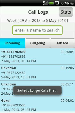 This application helps you to keep track of Calls(incoming,outgoing as well as missed) and SMS(sent and received) for today, past week, past month, specific date or particular range and thus helps you to make note of calls on a particular day when it was roaming or you can also track how much you spend for calling particular number or you can also check the longest call for the period of time. It also helps you to check the SMS sent and received,for particular day or period of time, if you have periodical limits in number of SMS.