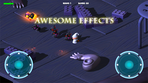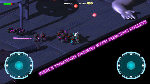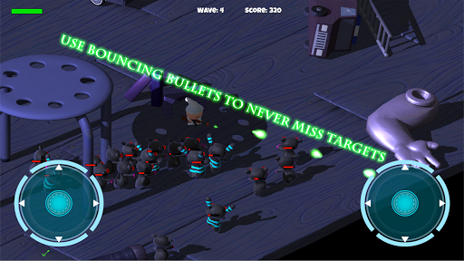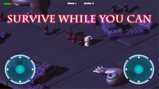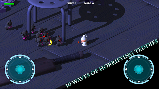Our little hero got to the bed just fine , When one night he wakes up in the middle of the night , Only to find himself surrounded with many cute little teddy bears , Cute little ? He doesnt think so ,These teddies are his worst nightmare ,Help the hero take control of the little hero and shoot as many teddy bears as you can before you wake up only to go into the same dream again !!!