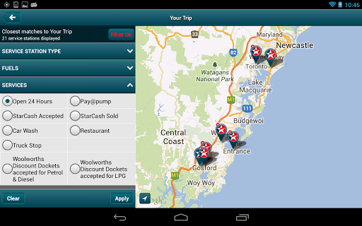 •Use the trip planner to see where you can fill up or stop for convenience items.