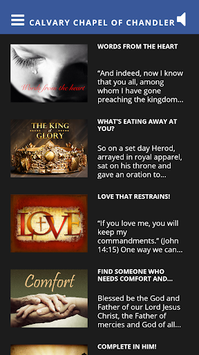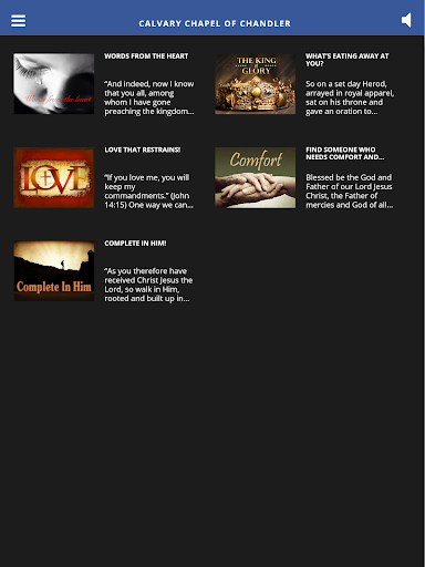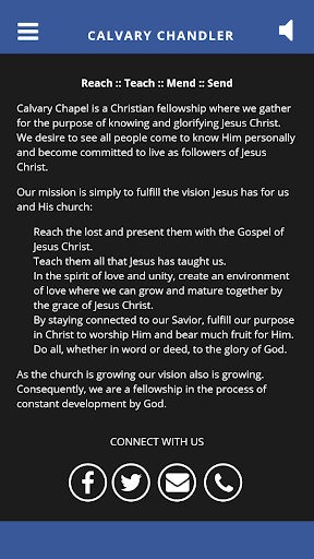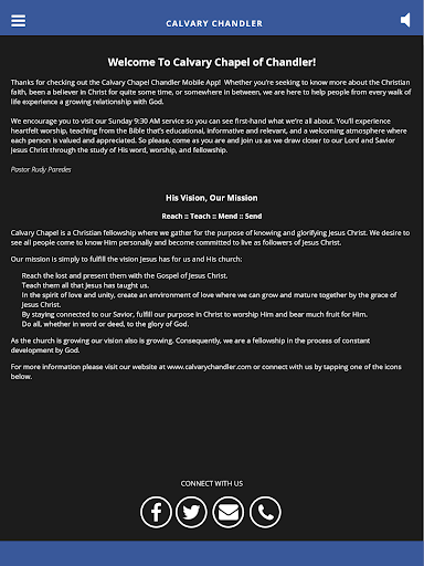 The official app of Calvary Chapel of Chandler in Chandler, AZ. Get connected with church service audio and video media, study notes, prayer chain, news and announcements, weekly devotionals and directions and contact information. Make church more than just a Sunday thing!