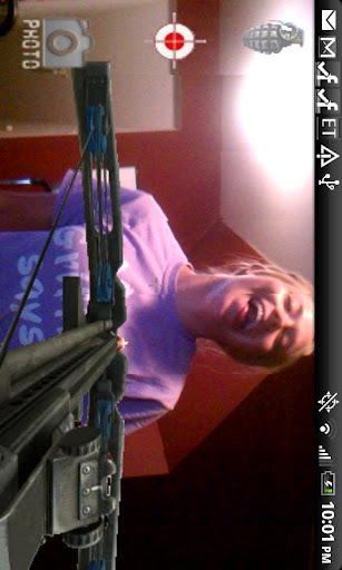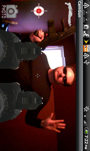 CamGun is a fun way to use the camera on your phone like an augmented reality first person shooter - "call of duty style". Shoot your friends with a variety of guns like a fully automatic M4 rifle or a SPAS12 shotgun and post it on Facebook. Also includes the dual wielding SOCOM Mark23s, a Star Wars blue Light Saber, a MiniGun, a GRENADE EASTER EGG and a SR25 sniper rifle with a THERMAL SCOPE -- Headshot! Now including a special unlockable AK74u rifle with a red dot sight and tiger camo a crossbow, and a tactical knife, and a paintball gun!Splat! and now a M249 SAW Machine Gun!