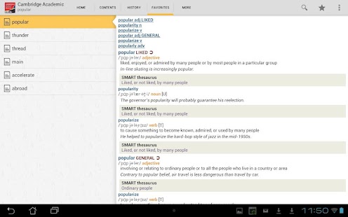 The dictionary app includes a number of features which help you to expand your vocabulary further: