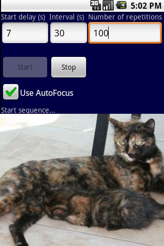 This app makes it possible to take repeated photos with the mobile camera, for time laps photos,etc.