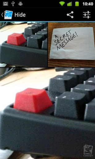 * Use steganography to hide secret pictures that only Camopic can reveal!