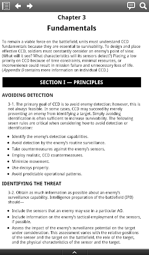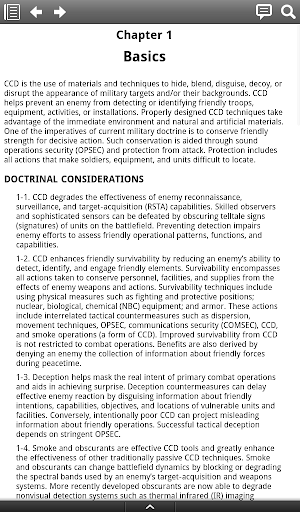 Camouflage, Concealment, and Decoys: Understanding the principles and techniques of camouflage, concealment, and decoys (CCD). To remain viable, all units must apply CCD to personnel and equipment. Ignoring a threat's ability to detect friendly operations on the battlefield is shortsighted and dangerous. Friendly units enhance their survivability capabilities if they are well versed in CCD principles and techniques. CCD is equal in importance to marksmanship, maneuver, and mission. It is an integral part of a soldier's duty. CCD encompasses individual and unit efforts such as movement, light, and noise discipline; litter control; dispersal; and deception operations. Each soldier's actions must contribute to the unit's overall CCD posture to maximize effectiveness. Increased survivability is the goal of a CCD plan. A unit commander must encourage each soldier to think of survivability and CCD as synonymous terms.