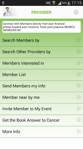 For Healthcare Providers, CancerNETWORK is a valuable resource for reaching out directly to our network of people whose lives were or are affected by cancer and are seeking advice, information, consultation and/or assistance in living as healthy a life as possible. You can easily search members based on their proximity to you and with 1 touch invite them to your seminars, facility or send them your contact information and description of services you offer. It is also a great way for you to manage and stay in contact with your current patients / clients and keep them up to date on everything you have to offer.