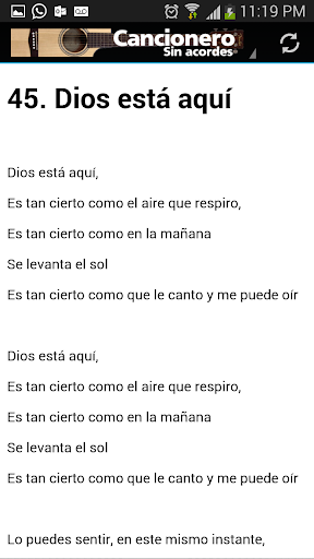 Estamos trabajando para agregar más cantos, los demos cantadas de cada uno de ellos, y preparando una versión con acordes, de momento esto esta en proyecto por lo que te invitamos a que descargues esta versión, y nos ayudes a compartirla.