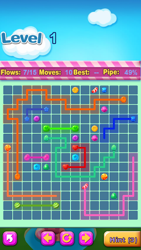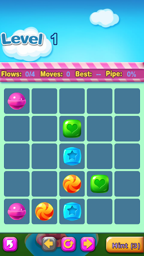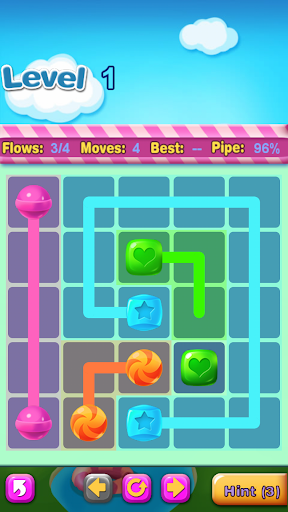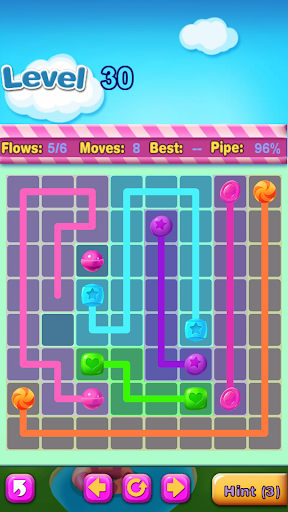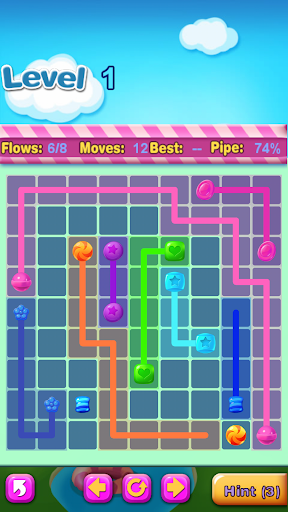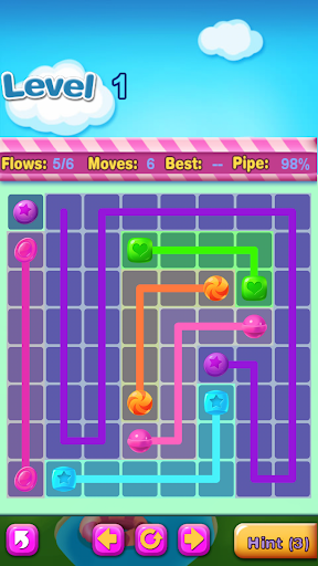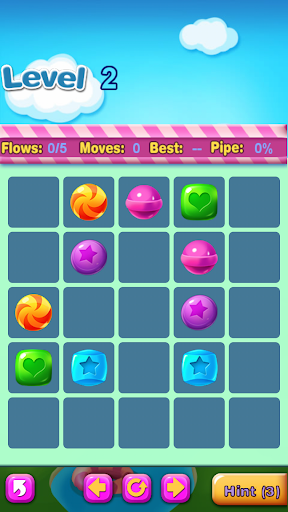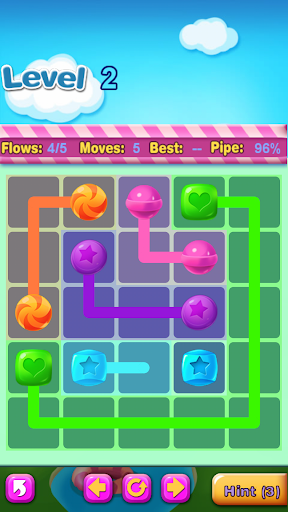 Connect matching colors candy with pipe to create a flow. Pair all colors candy, and cover the entire board to solve each puzzle in Candy Flow. But watch out, pipes will break if they cross or overlap!