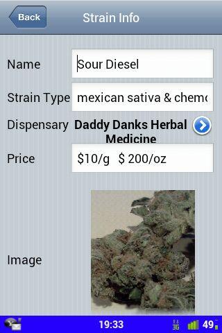 • Ability to enter an unlimited number of strains including name, strain type, dispensary, price, description, picture, and your rating
