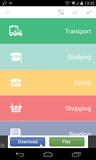 The app allows you to customize your interface by choosing the activities shown on dashboard. It also synchronizes with web app in real time and tracks your location (also providing statistics for particular locations).
