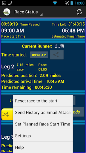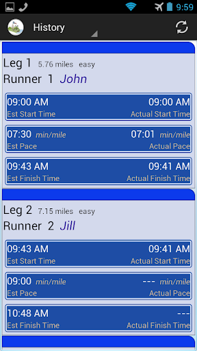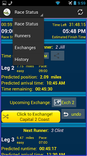 - View history and statistics. Compare actual vs estimated exchange times and runner paces, during and after the race. Export your data to a CSV file and email it to a friend or yourself.