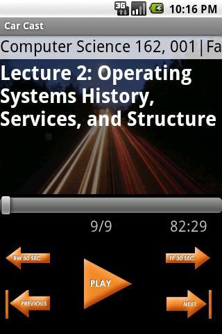 Car Cast Pro is a simple audio podcast downloader and player. Optimized for use in a daily commute or trip to the gym, it features big buttons, large text, remembers last played location. Car Cast Pro is based on Car Cast open source software.