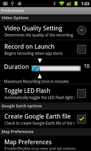 The app allows to record a Google Earth data file tracing the driving route.