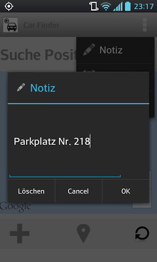 -Notizfeld, z.B. um Parkplatznummer zu notieren