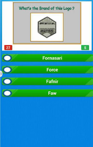 Quiz is divided into 127 levels by 10 logos per Level. you will find cars logos like Audi, Ford, Ferrari, Peugeot, Opel, Buick, Chevrolet, Mercedes, Volkswagen, BMW etc.