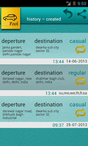 • Car Pool Requester as well as the Car Pool Offerer can choose among the Regular or Casual journeys. Regular Car Pools are intended for daily traveling and the Casual Car Pools can be created for one-off use wherein the timing and date will vary.