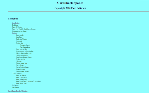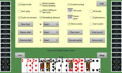 CardShark Spades ("CSS") is the most challenging Spades game available, but includes many unique features to even the odds for non-experts such as getting hints, peeking at other players' cards, starting a deal over, and more.