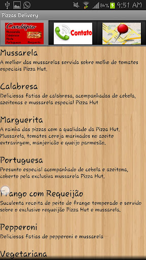Cardapio digital contém cardapios de algumas pizzarias da cidade de Belém e o número de contato pronto para você ligar e pedir a sua pizza preferida.
