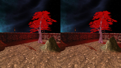 A 3D environment enjoyable through cardboard VR. This environment contains some illuminated trees, houses, stalls, carts, rocks etc. Move your head 360 degree and enjoy!