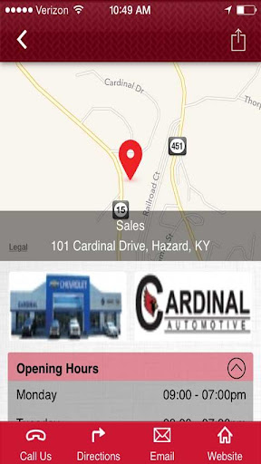 Cardinal Automotive - Hazard, KY - Download this app to get exclusive deals, find out about events, see continuously updating vehicle inventories, get directions, give feedback, schedule service appointments, exclusive coupons, connect with friends socially and much more.
