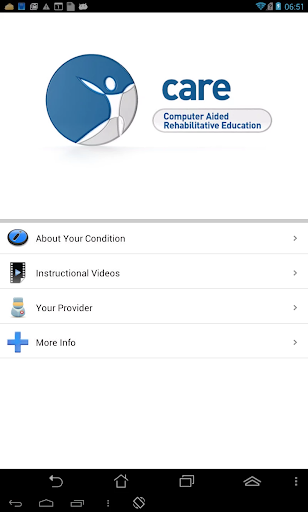 care™ (Computer Aided Rehabilitative Education) is a progressive approach to patient education which provides health care institutions with innovative, customized multimedia solutions to transform traditional patient education into interactive web-based patient support tools. All information is secure and requires personal login details from your health care provider, which can also be used for accessing the information via the www.careforpatients.com website.