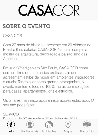 Com 27 anos de história e presente em 20 cidades do Brasil e 6 no exterior, CASA COR é a mais completa mostra de arquitetura, decoração e paisagismo das Américas.
