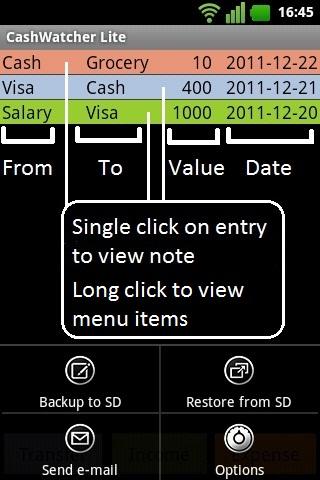 Database backup is stored in the CashWatcherApplication directory of your SD-card.