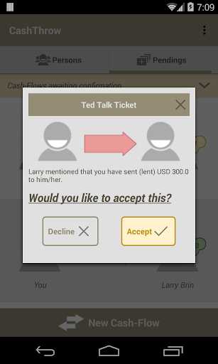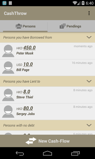 Unlike ordinary debt management apps in which you simply jot down notes for your own references, all records in CashThrow require confirmations from both parties. It's guaranteed that everybody is on the same page.