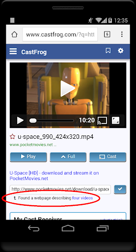 Even if the website you're visiting is not Chromecast enabled, CastFrog may be able to find videos to enjoy by examining that page's HTML. Use the built-in cast controls in updated browsers to manage your viewing.