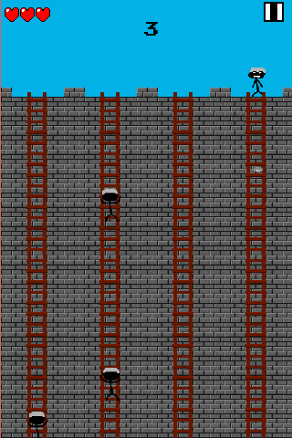 Defend your castle from the invaders by knocking them off the ladders, if an invader gets up to the ladder you lose a health piece, when you reach zero you lose the game.