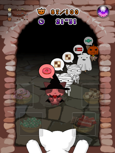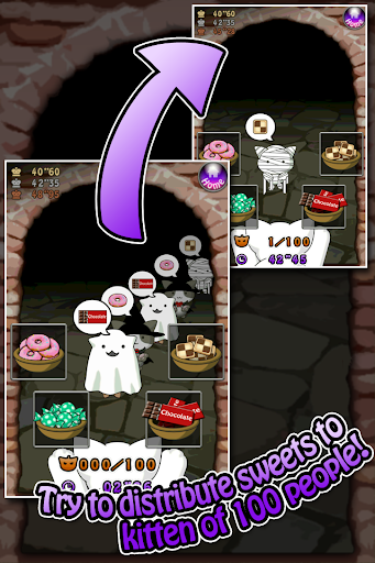 This is a Touch-Action game to give the candy kittens with Halloween costumes want.