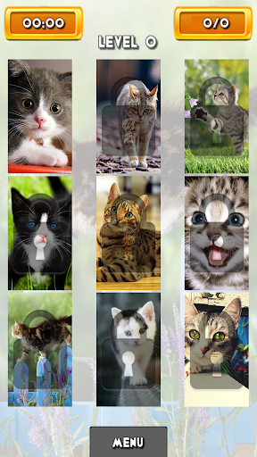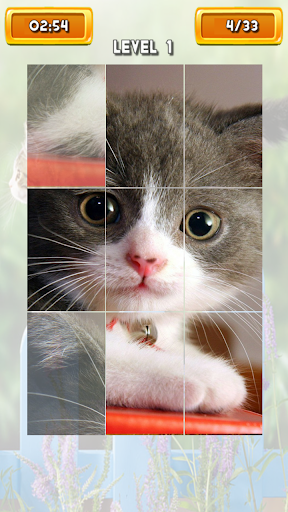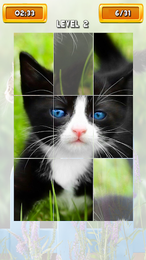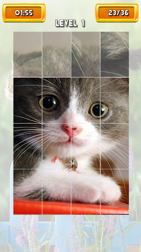 Enjoy of high quality images. The game contains 60 levels with beautiful cats pictures. Drag the pieces to the right place to create the image. Completed levels will be unlocked. If you can not complete any level you can simple skip it and try to complete it later.