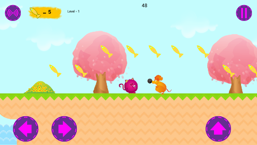 It is very simple to play "Cat Sam": jump and collect as much as possible fishes to your friend was always full of energy! Don't forget about treasured balls which are skillfully hidden on each of levels! Jump over obstacles together with Sam and hurry to your goal! To kill enemies, you can jump on top of them, because your goal is to lead the Sam through all the levels to the end, ignoring the obstacles.