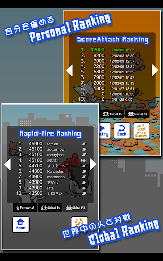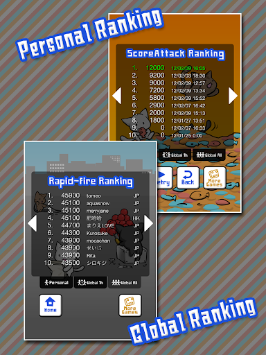 When you get more than 500 points, you can register your score in the global ranking by tapping the "Global Ranking Entry" button shown after the game.