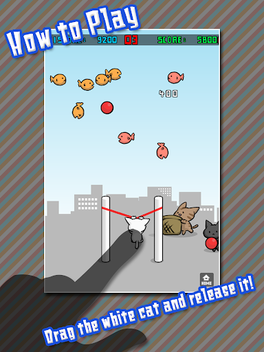 The player uses the cat's catapult to drag and release,lefting the ball fly.