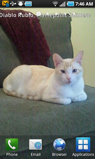 Once installed, you can select the CatShare live wallpaper. A continuous slideshow of cat photos you've shared or which have been shared by others is displayed as your background.