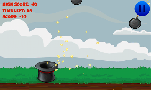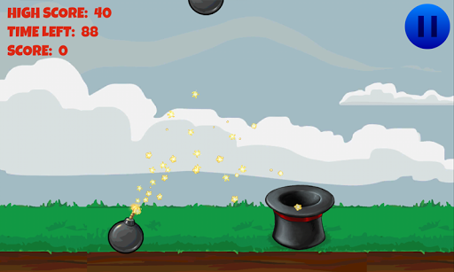 Playing is very easy. Touch the screen for your hat move. Every catch ball will earn 1 score and every catch bomb will earn -2 score. You should be careful for bombs. You can make highest score. Good Luck!