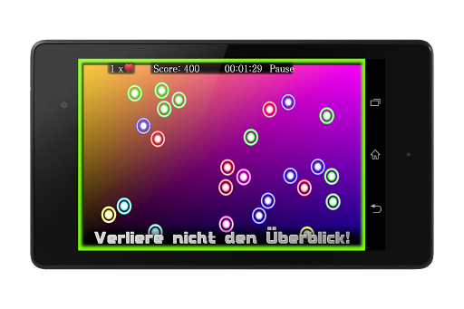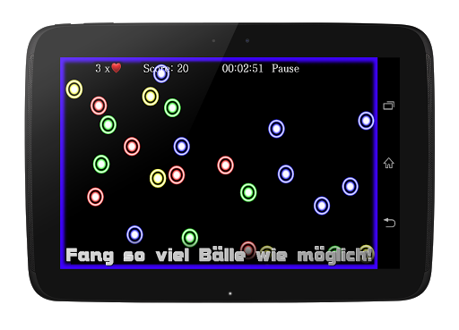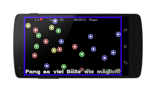 Beachte, je nach Zeit und Punkte werden die Bälle schneller und ändern die Farbe.