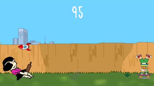 Timmy has been very bad and runs because he knows you're going to hit him. Try to reach Timmy but be careful with toys he is releasing!.