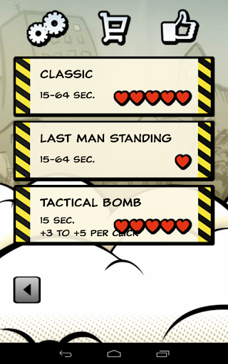 Place your device in the middle of the table. Now, like in the classical game “Scattergories”, you need to find a word, which can be associated with one of the three available categories shown on the screen and starts with the letter in the top left corner. Rather than writing the word down, say it out loud so everyone can hear you. Do this as fast as possible and touch the appropriate category to pass on to the next player. Do this as quickly as possible, so you won't be the one getting hit by the bomb, which detonates at a random time. Depending on the game mode, the game ends after a certain number of explosions.