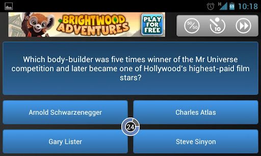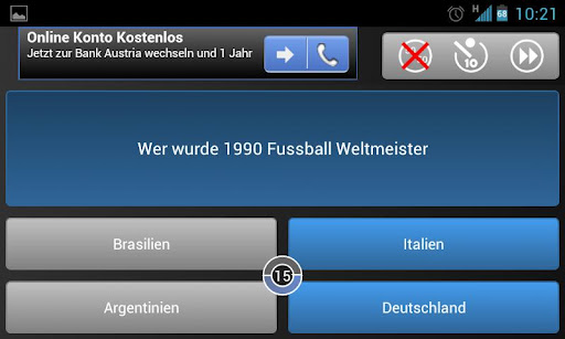 Für die Beantwortung einer Frage hat der Benutzer bei Verwendung des Timer (über Optionen einstellbar) 30 Sekunden Zeit. Je schneller eine Frage beantwortet wird, desto mehr Punkte gibt es für die richtige Antwort (3 Punkte pro verbleibender Sekunde). Über die Optionen lässt sich steuern ob mit oder ohne den 3 zur Verfügung stehenden Jokern (50:50, Timer anhalten, Neue Frage) gespielt werden soll.