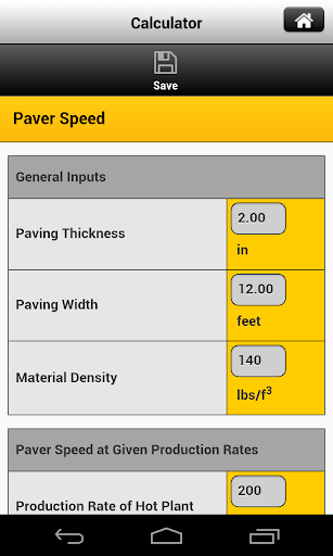 The Caterpillar Paving Calculator is a tool for asphalt paving professionals to plan their paving jobs by helping to estimate trucking needs, paving speeds, compaction and other factors. The calculator can help optimize the job site, reducing inefficiency and contributing to smoothness.