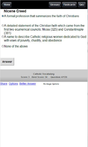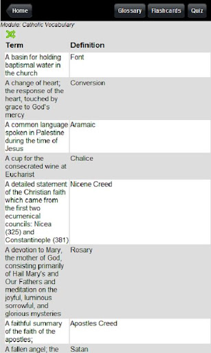 Catholic vocabulary guide & quiz. Includes quiz, flash cards, dictionary.