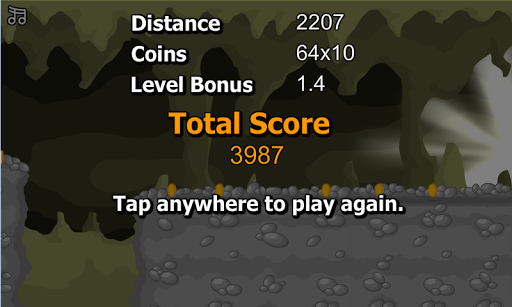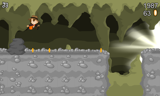 Run and escape out of the collapsing cave. There will be rocks, ice, and fire pit that will slow you down. Avoid the obstacles and jump over the cracks. Collect coins along the way to level up.